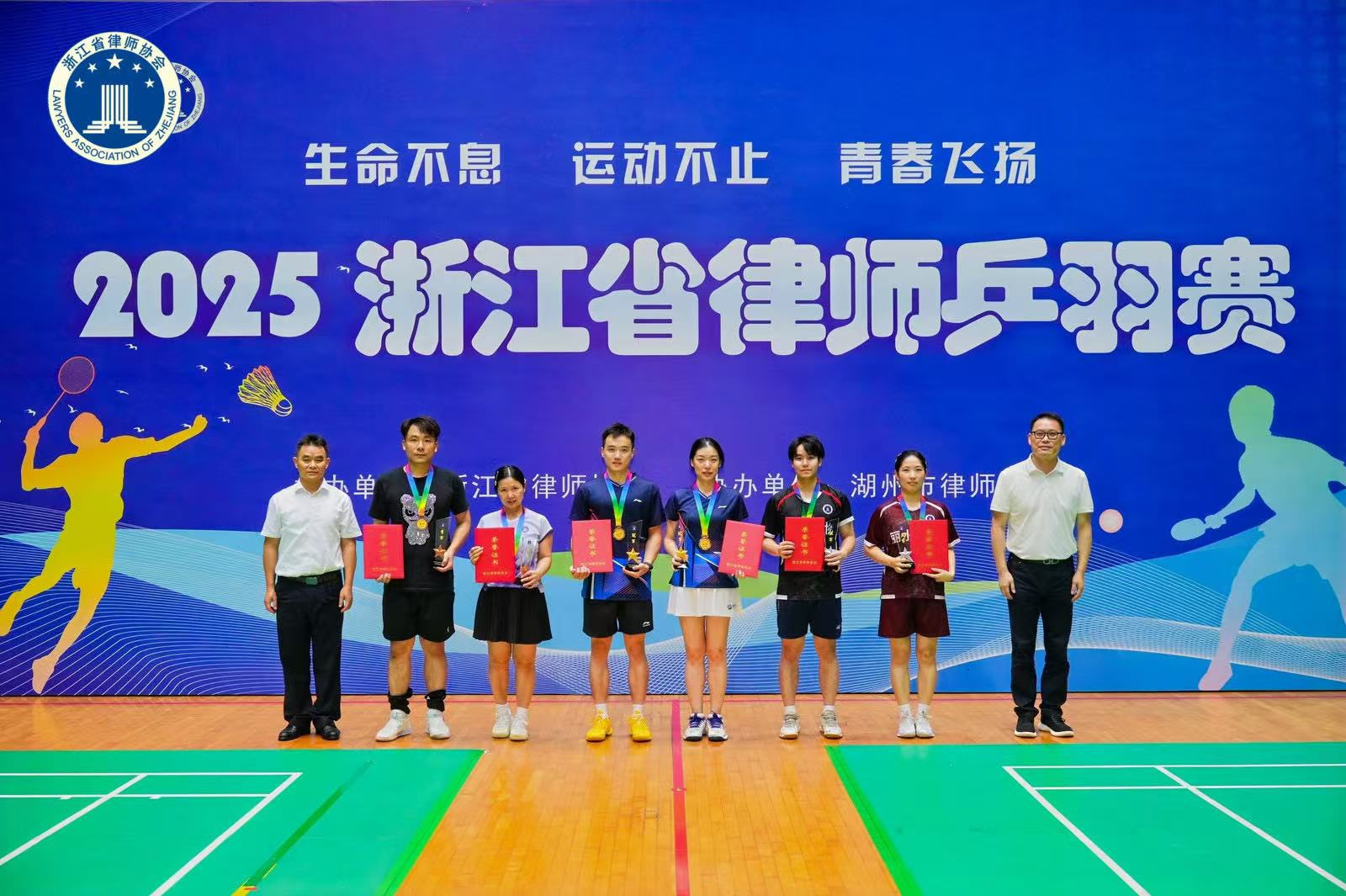 近日,由浙江省律师协会主办、湖州市律师协会协办的2025年浙江省律师乒羽赛在湖州市体育馆圆满落下帷幕。凯麦管星涛律师代表杭州市律师协会参加比赛荣获羽毛球混双冠军。